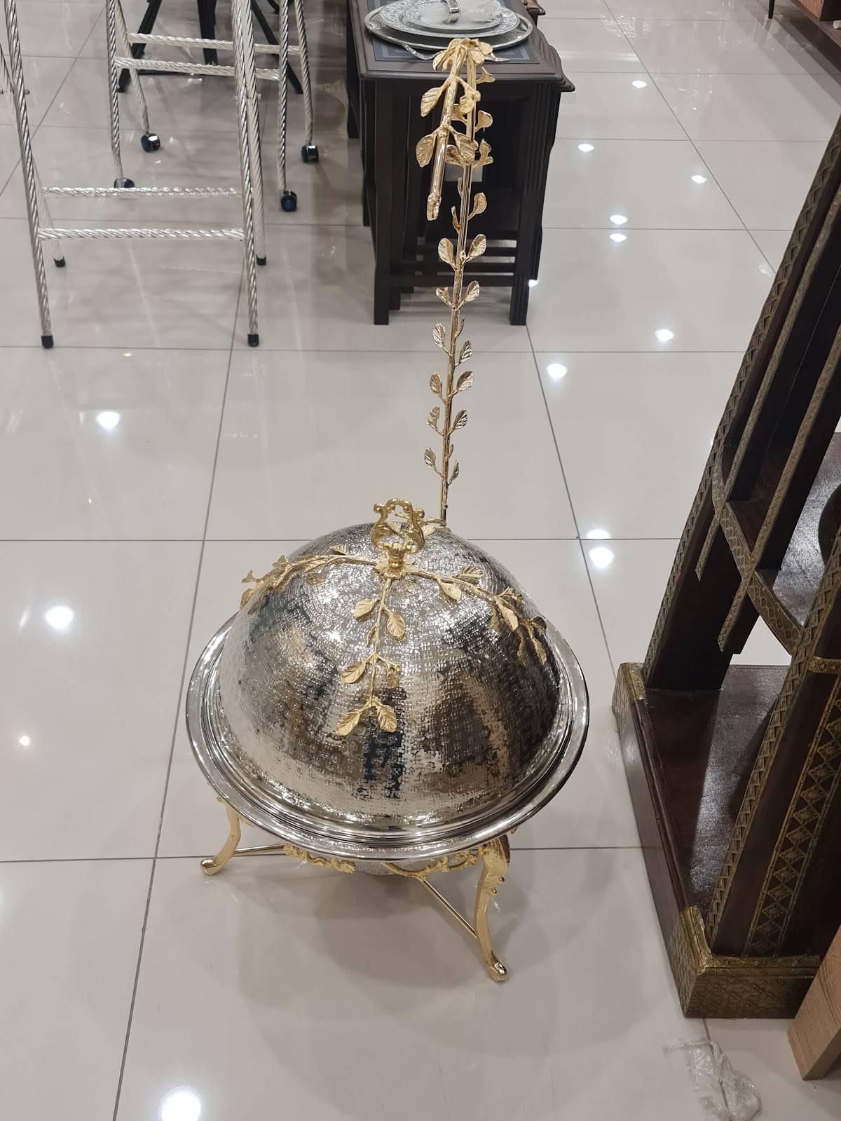 استضف ضيوفك بأسلوب راقٍ مع هذا الوعاء الفضي الكبير المزود بغطاء، المصمم لتقديم كميات وفيرة من الطعام مع الحفاظ على درجة حرارته. يتميز بلمسة نهائية فضية لامعة تعكس الأناقة الكلاسيكية، مما يجعله قطعة مركزية مذهلة على أي مائدة. مثالي للمناسبات الخاصة والاحتفالات، ويجمع بين الجمال والوظائف العملية ببراعة.
