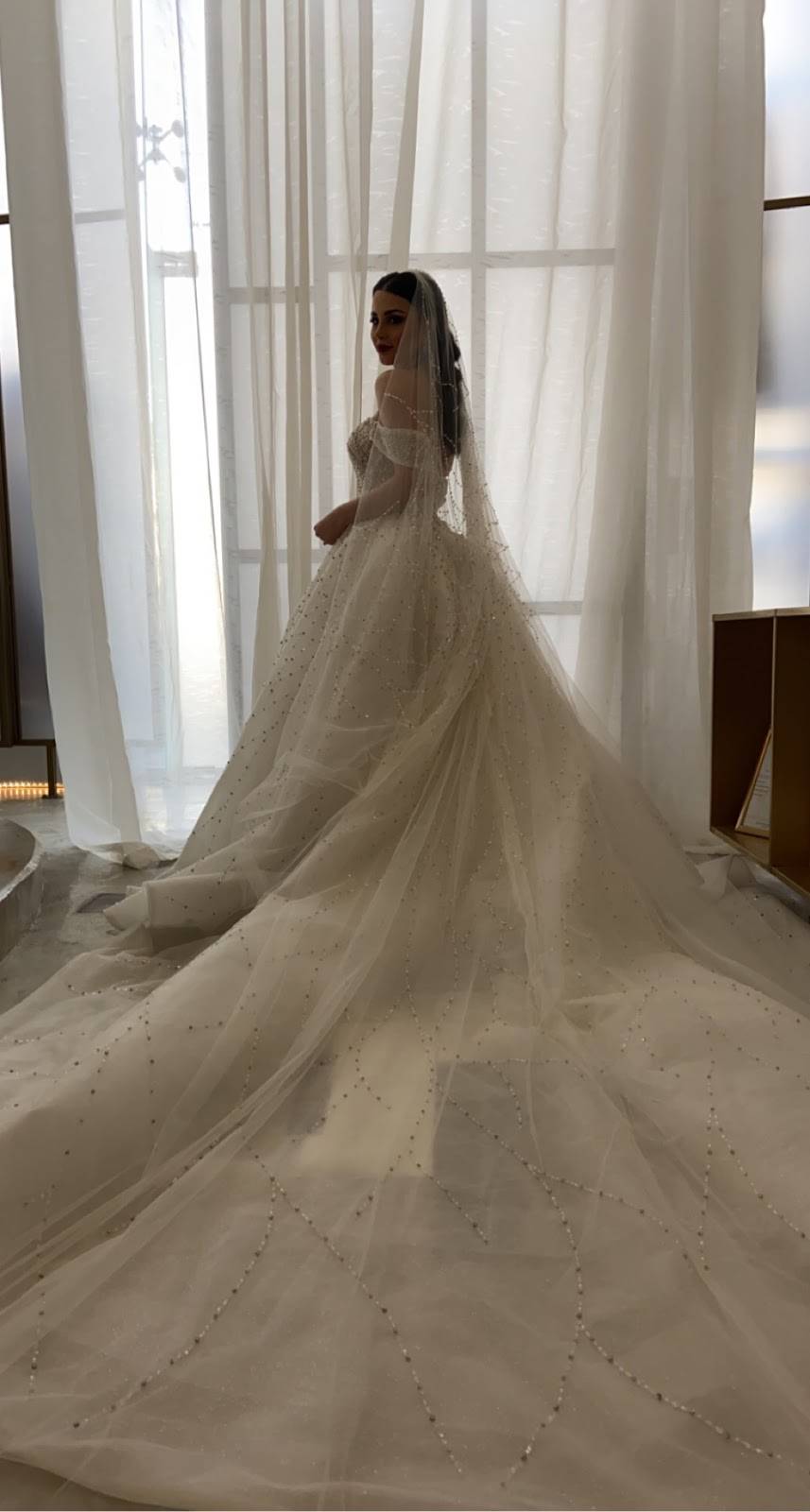 فستان زفاف بذيل طويل من إبداعات لابيسو المصممه بلقيس، مصمم ليحقق حلم كل عروس بإطلالة أسطورية. يتميز بذيل طويل منسدل بمهابة، يضفي على العروس فخامة لا مثيل لها وحضوراً ملكياً ساحراً. crafted بدقة متناهية من أفخم الأقمشة، قد يزدان بتطريزات يدوية أو دانتيل فاخر يكمل روعة الذيل. هذا الفستان يضمن لكِ دخولاً دراماتيكياً لا يُنسى إلى قاعة الزفاف، ويجعلكِ تشعين بالجمال والرقي في أهم يوم بحياتك، محاطة بهالة من الأناقة الخالدة.